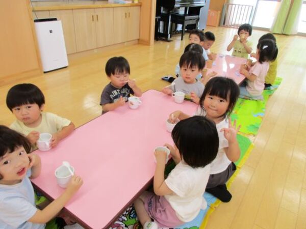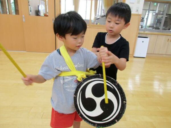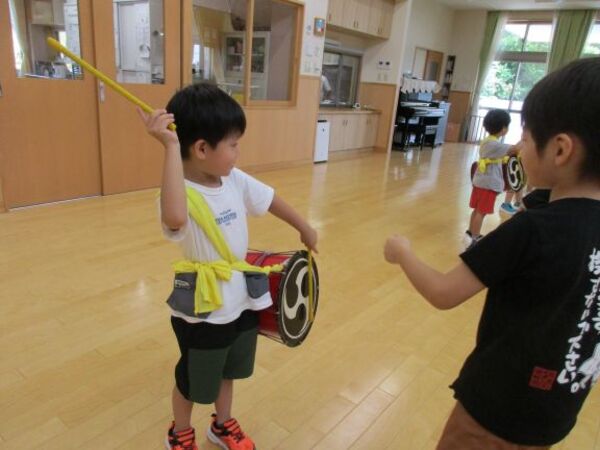 写真@A ねぷた運行で太鼓を頑張ったくま組(5歳児)さんは、 来年度太鼓を叩くきりん組(4歳児)さんにバトンタッチ。 叩き方を優しく教えてあげていました。 「こうやって叩くんだよ〜」 「手を伸ばすんだよ〜」 写真B 終わった後、みんなでアイスクリームを食べました。 ねぷた、合同運行で太鼓や掛け声を頑張ったね〜 また来年も頑張ろうね。 |