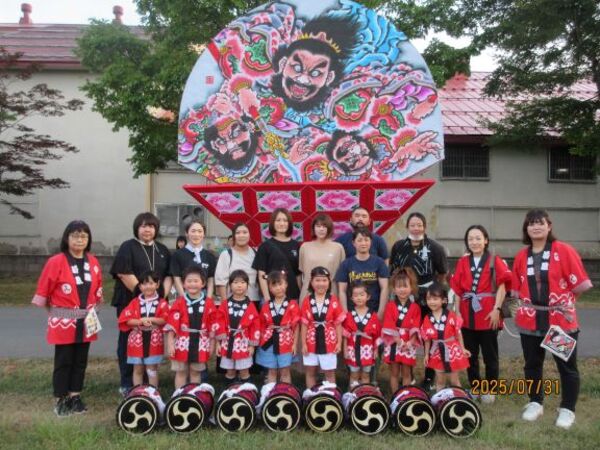 青柳ねぷた愛好会様のご協力の下、元気いっぱいに 参加した町内のねぷた運行。 写真@ 初めてのねぷた運行。いざ、出陣。 写真A 半纏姿もバッチリ決まっています。 写真B 「ヤーヤドー」大きな声ではりきります。 写真C やる気満々。お祭り、大好き♡ 写真D いざ出陣。「あおやぎねぷた、ヤッ!」 写真E 毎日、太鼓の練習を頑張り、音色も、揃うように なりました。 かっこよく決めて頑張ります! |